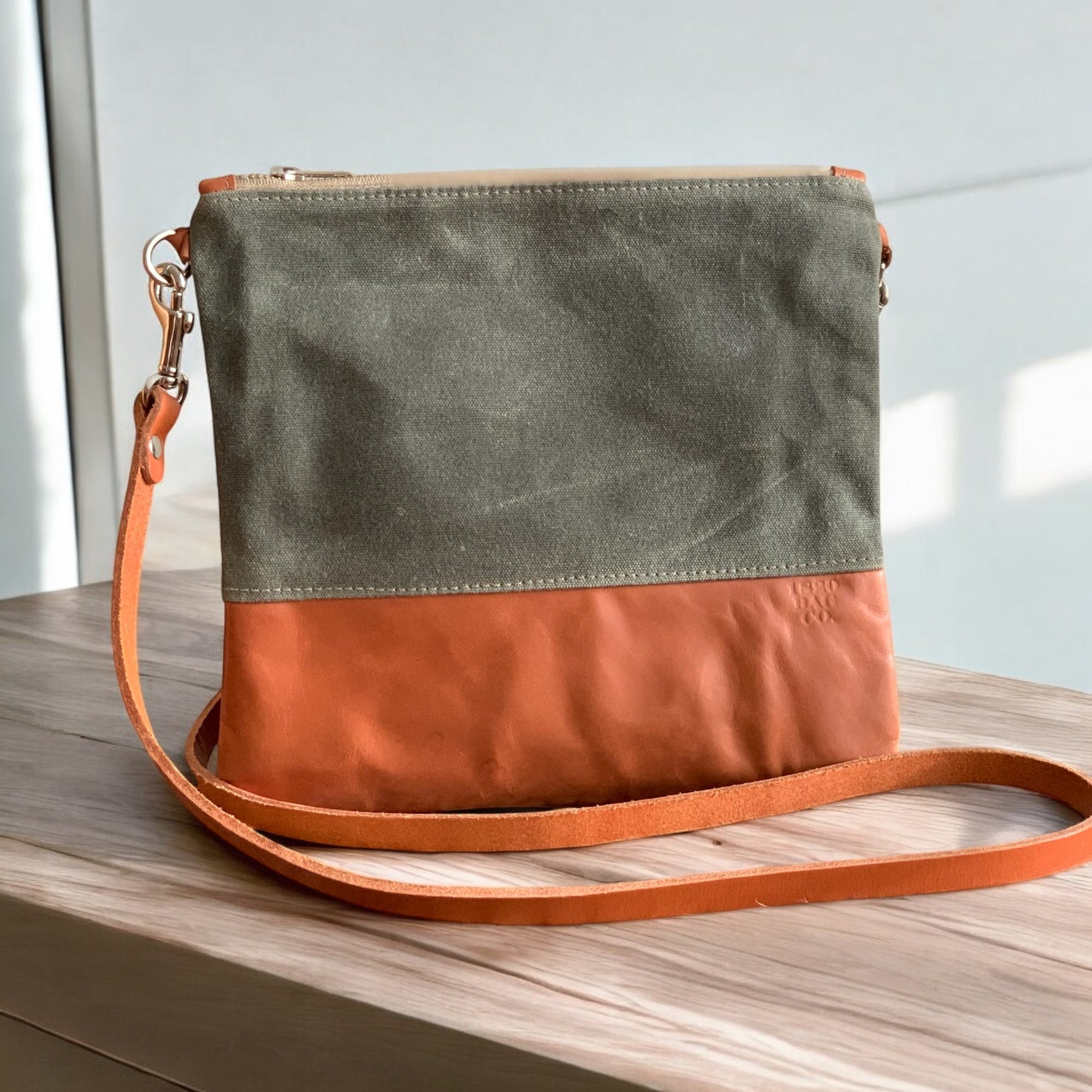 Sanibel Waxed Canvas & Leather Crossbody Bag - Handmade, Durable & Stylish